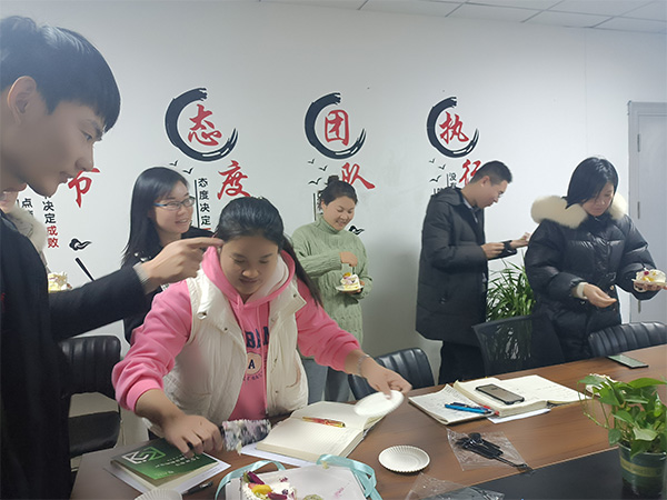 對待每個員工都像家人一樣,沒有公司存在的勾心斗角,大家都互相幫忙,下面附上銷售部同事舉行的生日宴會照片,